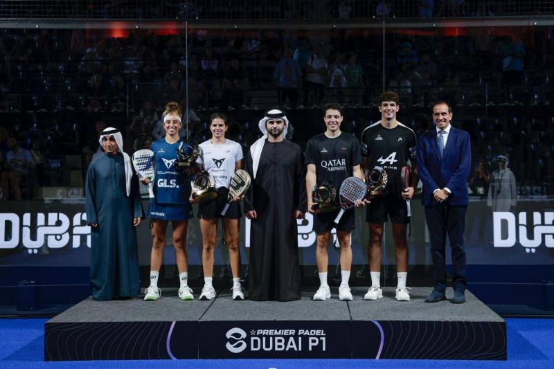توّج رئيس مجلس دبي الرياضي، الشيخ منصور بن محمد بن راشد آل مكتوم، الفائزين من فئتي الرجال والسيدات في الدورة الأولى من بطولة دبي بريميير بادل P1، التي أقيمت على استاد سوق دبي الحرة للتنس مساء يوم الأحد.