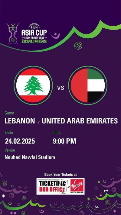 انطلقت قبل ظهر الأربعاء عملية بيع بطاقات الدخول امام الجمهور اللبناني لحضور مباراة لبنان والامارات العربية المتحدة التي ستقام عند الساعة 9 من مساء الاثنين 24 شباط 2025 في "مجمّع نهاد نوفل"(ذوق مكايل) ضمن "النافذة الثالثة " والأخيرة من تصفيات كأس آسيا للرجال بكرة السلة.فدعم منتخب الأرز مطلوب لمواصلة مبارياته في التصفيات من دون خسارة ولبقائه في صدارة المجموعة السادسة .