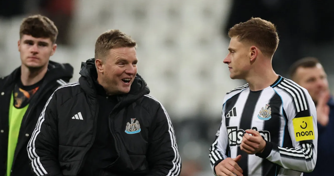 عندما دخل إيدي هاو أرضية الملعب لتحية لاعبيه، وضع مساعده جايسون تيندال ذراعه بقوة حول كتفيه. كانا قد تعانقا بالفعل عند الخط بعد صافرة النهاية، لكن فوز نيوكاسل يونايتد 2-1 على مانشستر سيتي كان يستحق «احتفالاً مزدوجاً»؛ مزيجاً من السعادة والارتياح.
