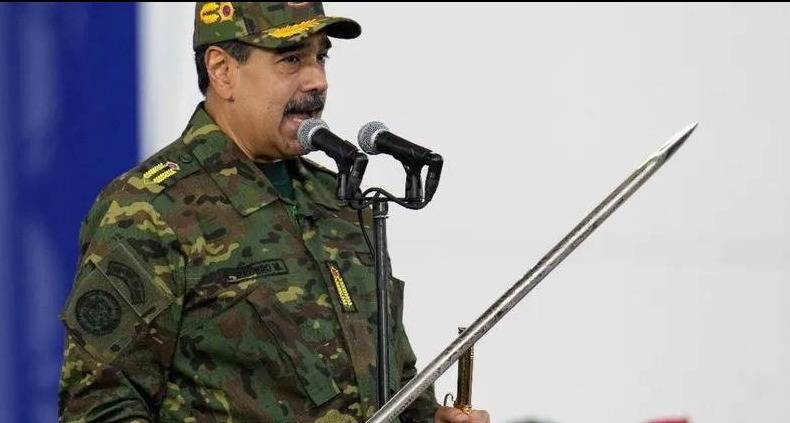 أشهر الرئيس الفنزويلي نيكولاس مادورو سيفا متعهدا بالدفاع عن "كل شبر" من بلاده، في استعراض بالتزامن مع التوتر مع الرئيس الأميركي دونالد ترامب.