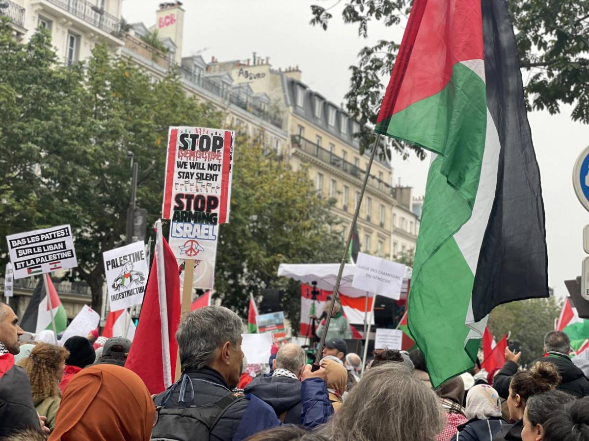 ووفق المنظمين، بلغ عدد المشاركين نحو 50 ألف شخص، بينما قدّرت شرطة باريس العدد بـ 8400 متظاهر. وردّد المحتجون شعارات من بينها: "غزة، غزة، باريس معك" و "من باريس إلى غزة، المقاومة"، ولوّحوا بالأعلام الفلسطينية ورفعوا لافتات كتب عليها: "فلسطين، لن نسكت" و"أوقفوا الإبادة الجماعية".
