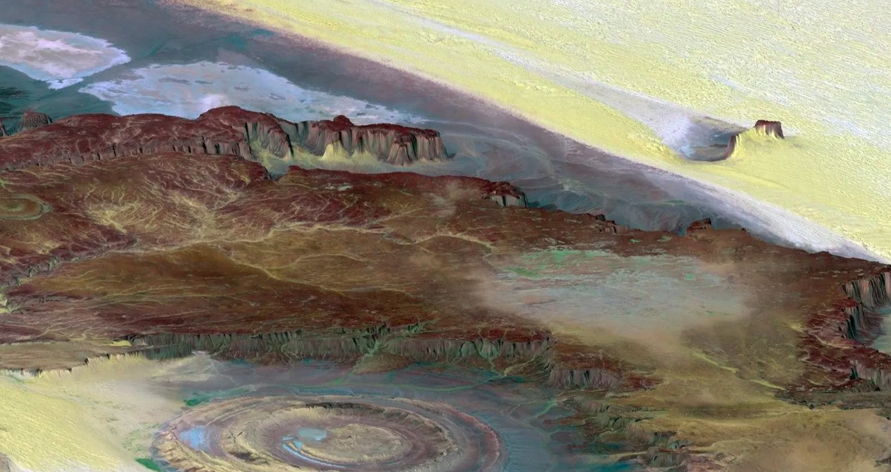 هيكل جيولوجي مذهل عمره لا يقل عن 100 مليون عام.. أشبه بعين حمراء أو عين ثور يمكن رؤيته من الفضاء.