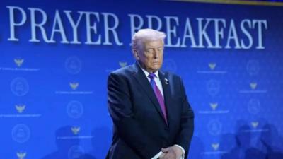 استهل الرئيس دونالد ترامب "فطور الصلاة الوطني" (National Prayer Breakfast) بممازحة الحضور مرة أخرى، قائلاً إنه قد لا ينجح في الوصول إلى الجنة.