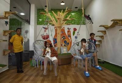 افتتحت سيدة أول كافيه من نوعه في قطاع غزة مخصص للقطط بشتى أنواعها وأشكالها، وسيكون متاحاً لمحبي وهواة القطط للتخفيف عن بعض همومهم ، كما تقول نعيمة معبِد صاحبة المشروع .