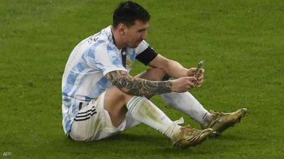 وانتشرت، خلال الساعات الماضية، صور كثيرة لنجم برشلونة الإسباني وهو يجري مكالمة فيديو جالسا على عشب المستطيل الأخضر، عقب فوز الأرجنتين بأول بطولة كبيرة في 28 عاما.
