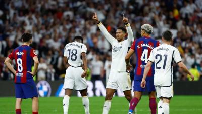 اقترب ريال مدريد من الفوز بدوري الدرجة الأولى الإسباني لكرة القدم بعدما سجل جود بلينغهام هدفا قرب النهاية ليقود فريقه للانتصار 3-2 على ضيفه برشلونة.