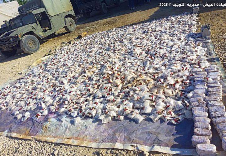 A unit of the Lebanese Army, supported by a patrol from the Intelligence Directorate, arrested a truck loaded with approximately 3.5 million Captagon pills and a quantity of hashish, which were hidden inside iron pipes in the Talya plain - Bekaa. Additionally, an army force raided the home of citizen (A.M.) in the town of Maqnaa - Bekaa, who was wanted for committing armed robbery, and arrested him, seizing a four-wheel drive vehicle, military weapons, and a quantity of ammunition. The army also arrested citizen (H.M.) for obstructing the actions of the personnel. Moreover, an army force in the Qobbeh area - Tripoli arrested citizens (S.M.), (K.J.), and (W.M.) for firing shots and seized military weapons, military gear, and a quantity of ammunition in their possession. The seized items were handed over, and investigations with the detainees began under the supervision of the relevant judiciary.