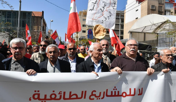 He continued: "We are demonstrating today in the street to announce to our people our alternative project, a project that was proclaimed by the national and popular uprising of October 17: a secular state, a civil and non-sectarian state, a democratic state with social justice, a state capable of liberating its occupied land from the Zionist enemy and protecting its oil and gas wealth." Gharib concluded: "All greetings to the public sector uprising that has been ongoing for two months, and to all independent labor and professional unions and committees that are sitting in and mobilizing in the streets. Our demonstration is one of support and endorsement for all of them."