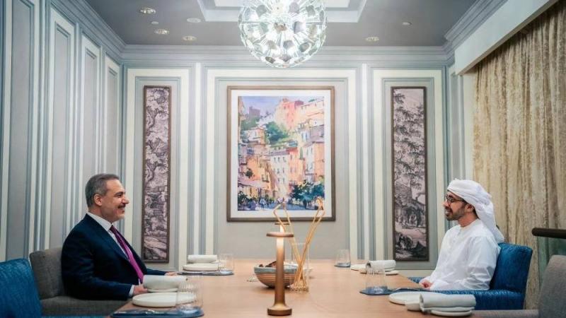 UAE Minister of Foreign Affairs Sheikh Abdullah bin Zayed Al Nahyan hosted a working dinner in Abu Dhabi with Turkish Foreign Minister Hakan Fidan. The meeting addressed the serious developments in the Middle East and international efforts to achieve a sustainable ceasefire and enhance humanitarian responses to the needs of civilians in the Gaza Strip, according to the UAE's WAM news agency.